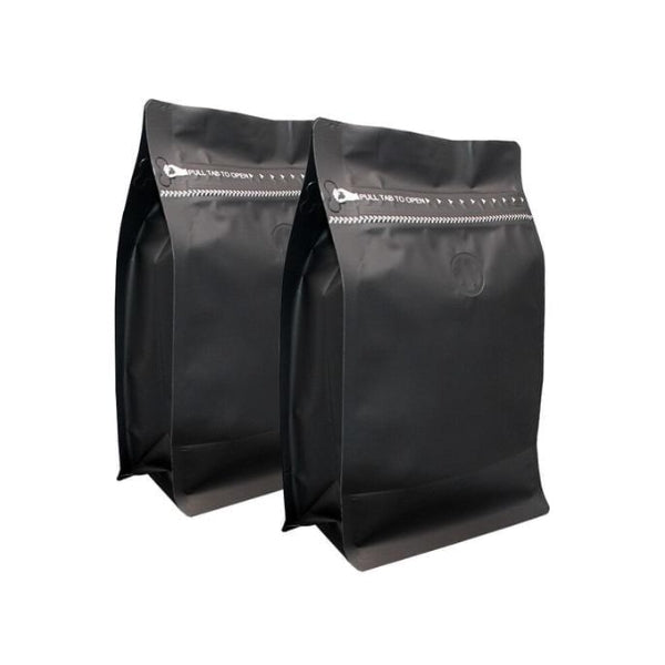 Coffee bags sold in sets of 50. These matte black coffee bags come in 3 different sizes.